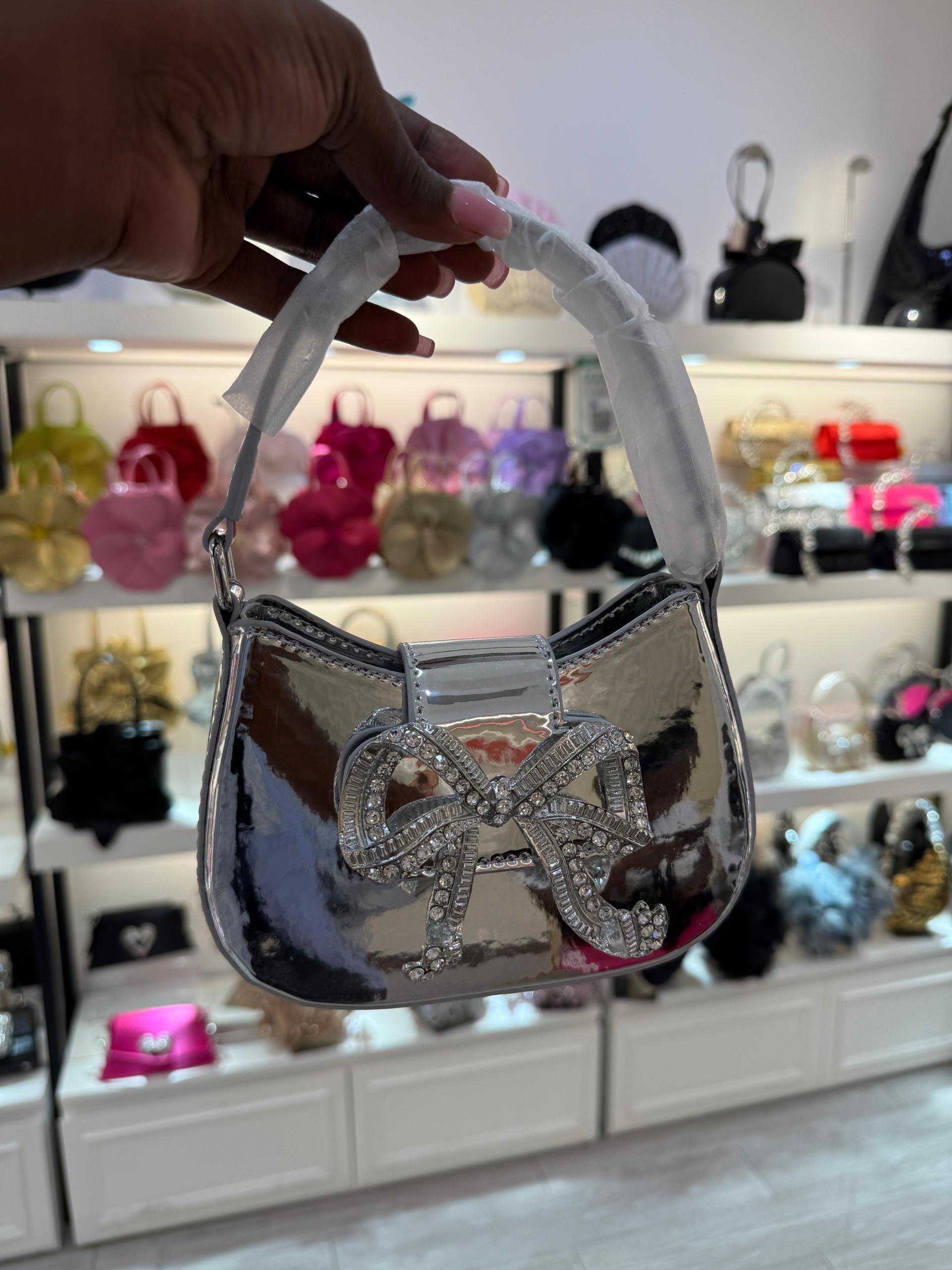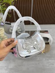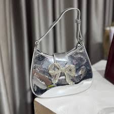 Home / Bags, Fashion Bags / Self-Portrait – The Bow Crescent Micro Bag in a silver metallic finish