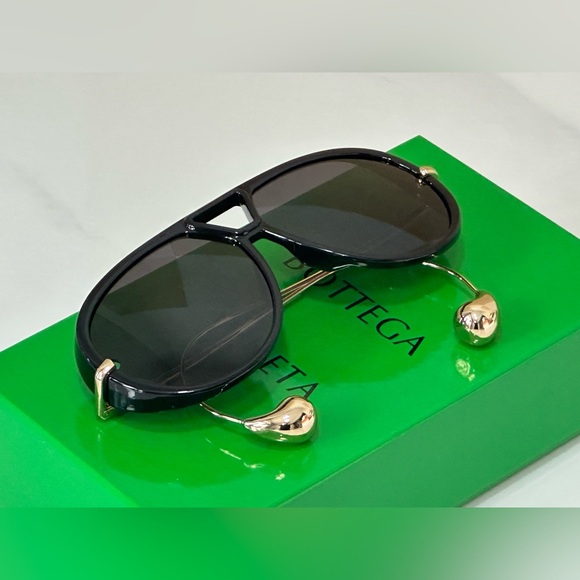Home / Bottega, Eye wear, Shades / Bottega Veneta Drop aviator sunglasses in black acetate with gold-tone hardware.