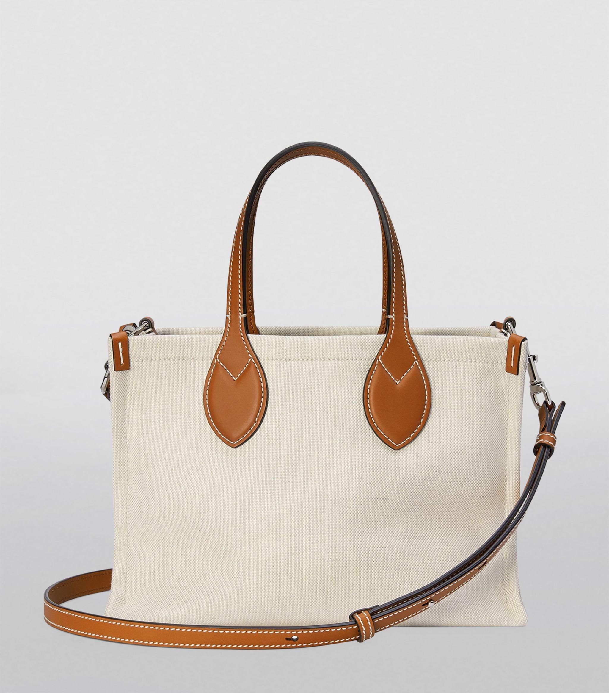 Home / Bags, Fashion Bags / This is a Gucci mini logo-print tote bag in beige cotton canvas with leather trim